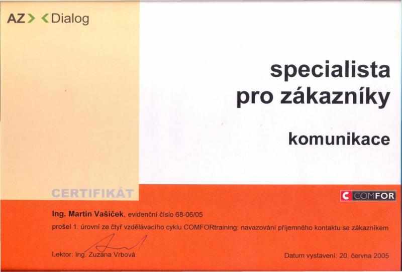 Certifikát ke vzdělávacímu cyklu - navazování příjemného kontaktu se zákazníkem