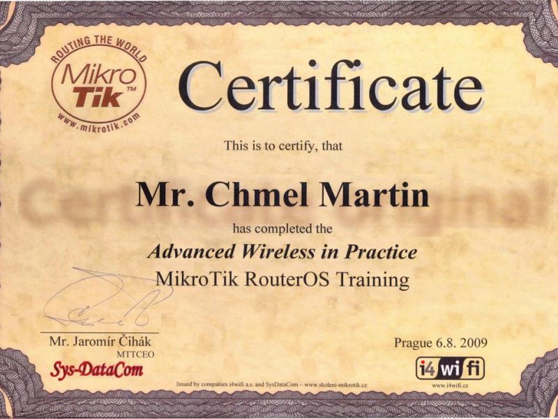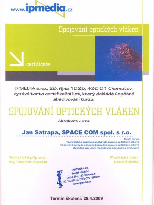 Certifikát opravňuje k obchodmímu a servisnímu zastoupení zavedené počítačové značky COMFOR
