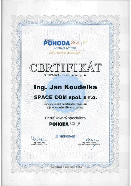Certifikace pro autorizované partnery společnosti Stormware (www.stormware.cz) k Informačnímu sytému POHODA 2010 SQL E1